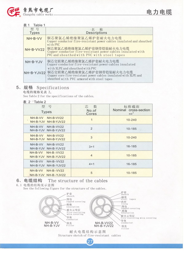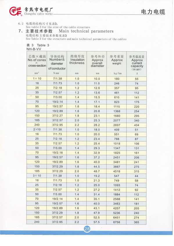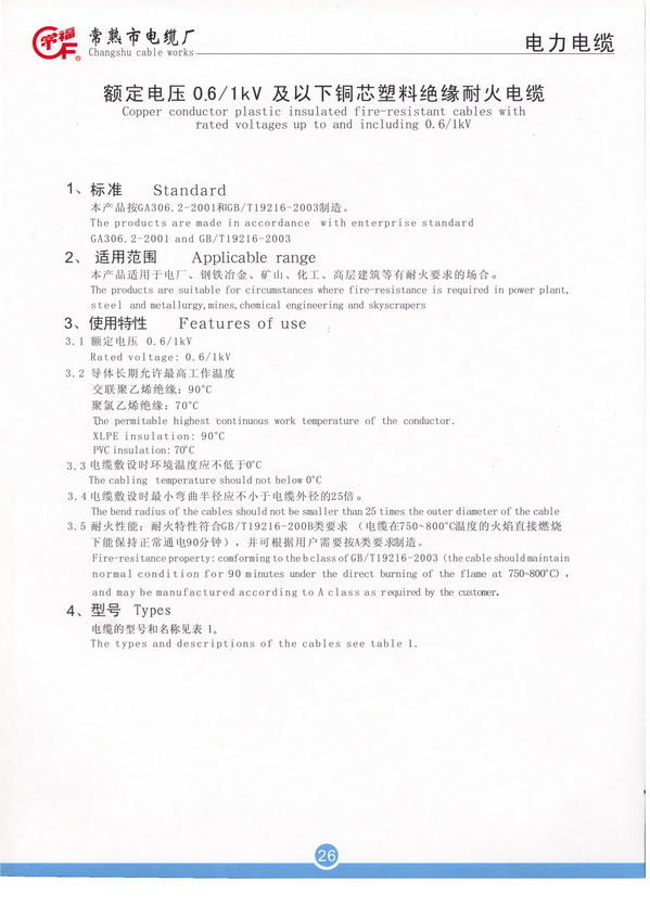 额定电压0.6/1kV及以下铜芯塑料绝缘耐火电缆